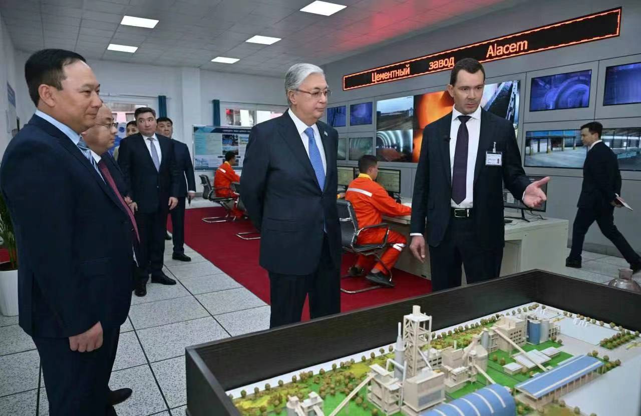 哈萨克斯坦总统托卡耶夫参观尊龙凯时集团总承包年产120万吨生产线